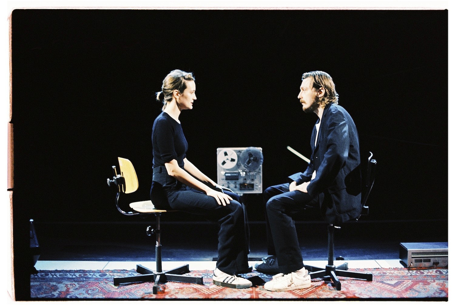 Актеры выстраивают голосовые мелодические линии, торопливые и раздробленные. Оборвавшиеся разговоры они подвешивают в невесомости, заставляя их будто дозвучать уже самостоятельно, как это происходит при игре на фортепиано, когда музыкант отпускает клавишу, но удерживает педаль. Эта мягкая игра позволяет и самим актерам мгновенно переходить из одной реальности в другую, перебирать бесконечное множество вариантов.